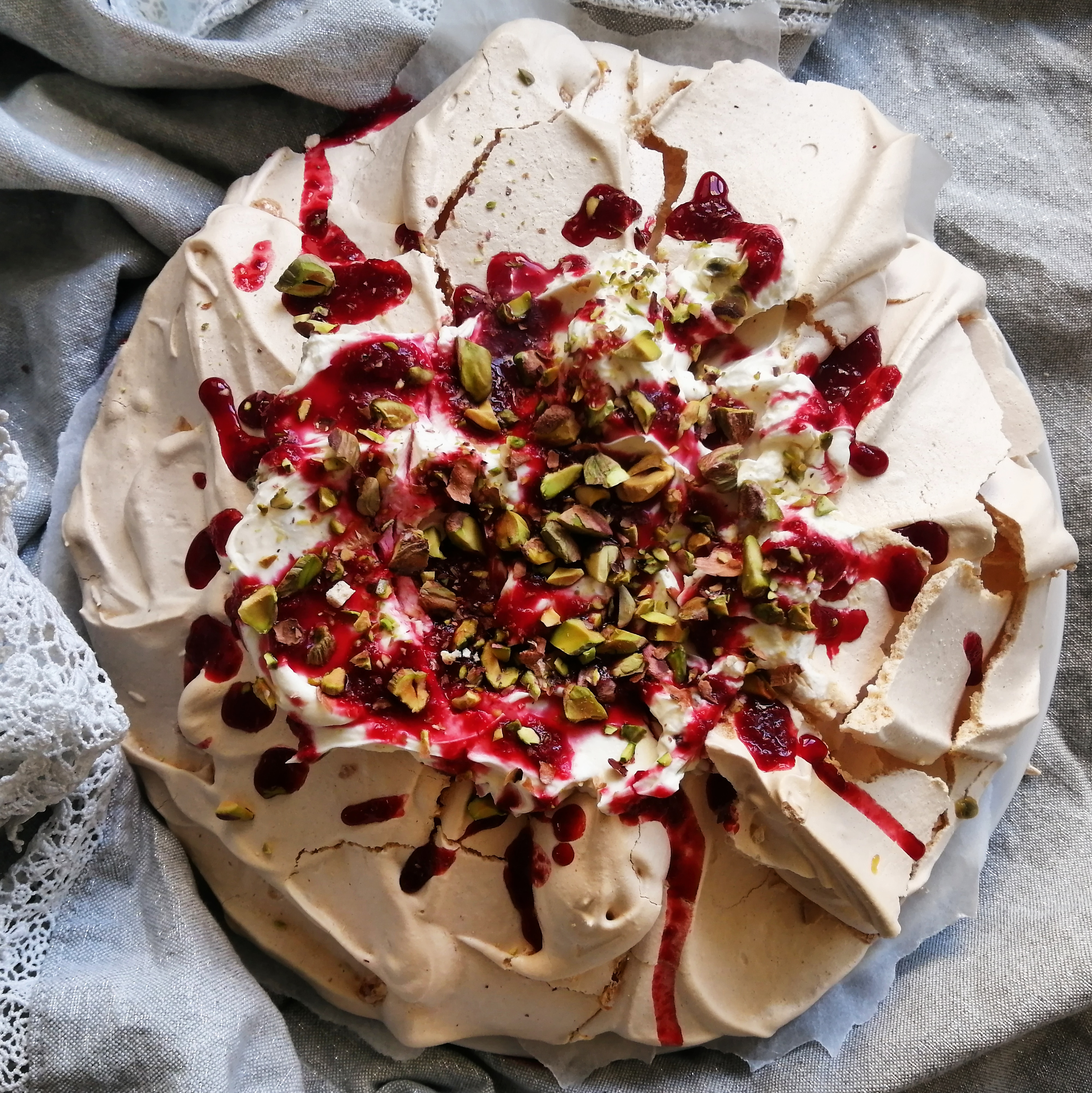 - bezy mini pavlova z kremem śmietankowo – mascarpone i owocami sezonowymi / z kremem pistacjowym i malinami / z mango i malinami